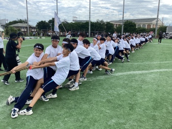 6月4日(水)前日の大雨も上がり、久しぶりに眩しい日差しの中、ロードサイドグラウンドにて中学校の体育祭がおこなわれました。 中学校は赤、青、黄、白の4色の色分けでチームが組まれました。 結果は色別対抗リレー、綱引きなどで圧倒的な強さを見せた白組の優勝となりました。
