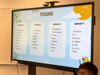 シンガポールへの参加者13名の中学生がTGGに集まり、積極的に英語を話して渡航に備えていました。