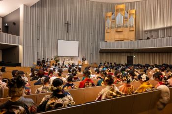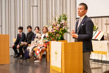 第一部として、チャペルにて祝福礼拝があり、 堂本校長先生より「人生のMVP」という題のお話をいただきました。その後は、桜カフェの方に移動して、学園の同窓・校友課のご尽力のもとで茶話会が開かれ、友人やお世話になった先生方との会話で盛り上がりを見せていました。限られた時間ではありましたが、多くの人の支えと期待があることを感じながら、大人として力強く生きていくことを決意できた場になったと信じています。今後の活躍を心をこめて祈るばかりです。