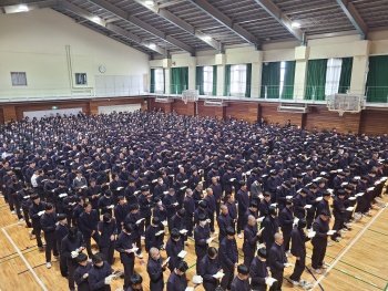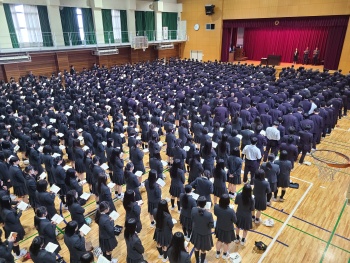 6日に入学した新中1、新高1は別プログラムが行われていたため、進級した4学年がアリーナに集まりました。