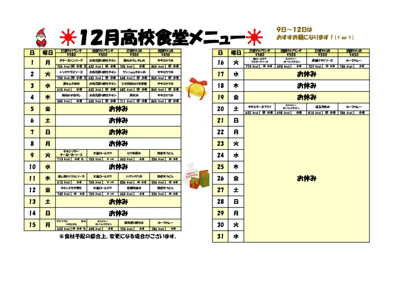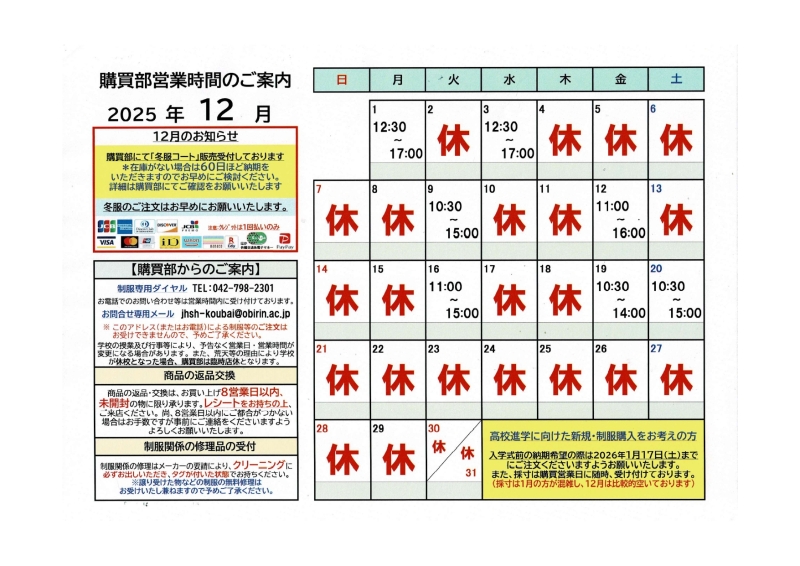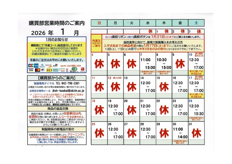 購買部利用案内(制服等の購入について)