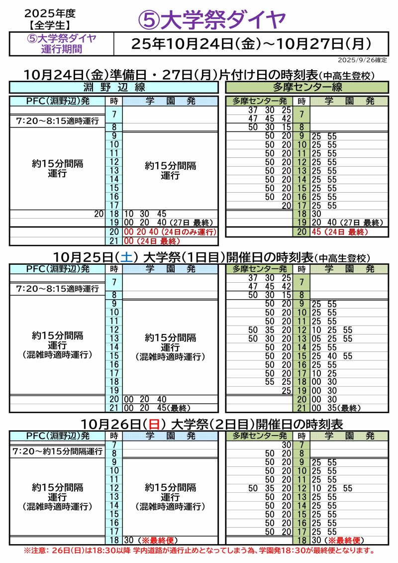 10月24日(金)~10月27日(月)のスクールバスダイヤ