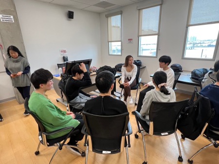 J.F.Oberlin students and international students mingle during Coffee Hour.