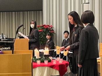毎年キャロリング礼拝では、在校生だけでなく在校生保護者、地域の方や受験生、卒業生などをお迎えして、一緒に讃美歌を歌い、聖書のメッセージを聞き、皆様とクリスマスの喜びを分かち合っています。