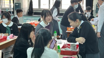 元朗信義中学は、香港の北部にある中高一貫校です。生徒たちは学校に着いた後、まず歓迎会をしていただき学校の中を少し見学した後、理科・英語の授業に参加しました。元朗信義中は、基本的に広東語での授業となりますが、数学、理科などの授業は英語で実施されています。滞在中、バディとして2人の生徒たちを中心に国際交流委員の生徒たちがサポートしてくれました。昼食をとった後、国際交流委員の生徒たちと、英語でゲームをして楽しい時間を過ごすことができました。