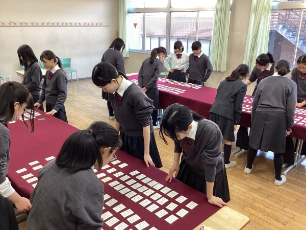 1月10日(土)午後のひととき、百人一首大会が行われました。 中1から高2まで計8組のチームが参加し、優勝は高2の太田・森谷ペアとなりました。