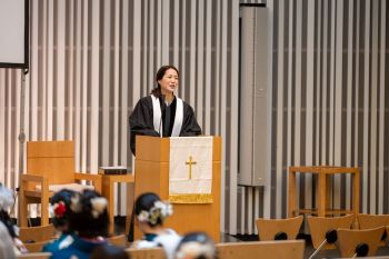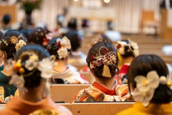 第一部として、チャペルにて祝福礼拝があり、 堂本校長先生より「人生のMVP」という題のお話をいただきました。その後は、桜カフェの方に移動して、学園の同窓・校友課のご尽力のもとで茶話会が開かれ、友人やお世話になった先生方との会話で盛り上がりを見せていました。限られた時間ではありましたが、多くの人の支えと期待があることを感じながら、大人として力強く生きていくことを決意できた場になったと信じています。今後の活躍を心をこめて祈るばかりです。