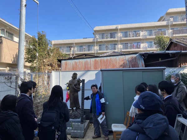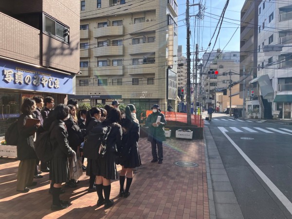 それを確認するために現地へ足を運ぼうと社会科講師井口先生が声をかけて集まった高2の有志生徒たち。ガイドの奥村さん、岩崎さんの話を聴きながら、風化させてはいけない真実を学ぶことができた。生徒の1人が最後に「修学旅行で学んだ、沖縄で起きてきた米軍関連の惨事。それが関東で幾たびも、そしてこの町田駅の近くでもあったなんて。もっと学ばなければならない。そして平和を守っていかなければならない。」という力強い言葉での締めくくりとなった。