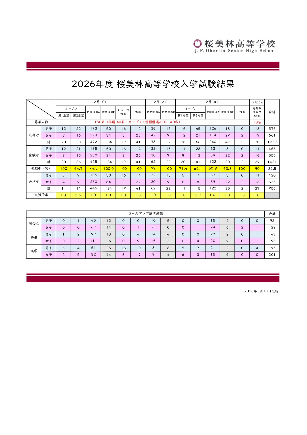 2026年度高等学校入学試験結果