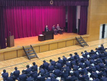 6日に入学した新中1、新高1は別プログラムが行われていたため、進級した4学年がアリーナに集まりました。