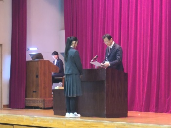 また、イタリアからの留学生の紹介と、春休みに活躍した部活動の表彰も行われました。