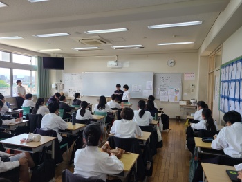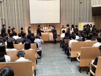 22日(水)の中学礼拝では桜美林学園チャプレンの土橋敏良先生から「『詰んだ』と思ったところが『始まり』となった!」という題で奨励をしていただいた後、学年間でのカード交換、分かち合いの時を持ちました。