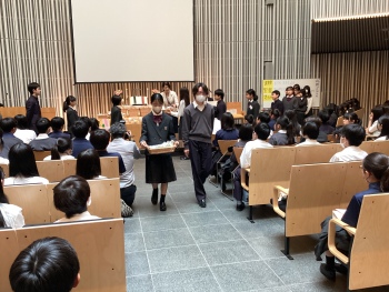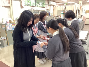 礼拝後の昼休みと放課後には、お世話になっている保健室、図書室の先生や警備員さん、学園の方々に奉仕委員の生徒たちからカードをお渡しし、日頃の感謝をお伝えしました。